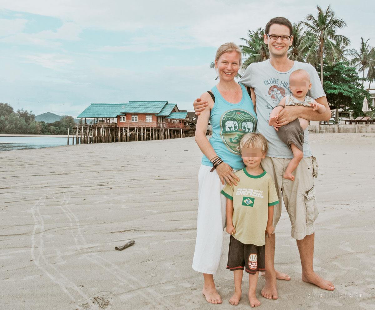 Mein Blog geht unter dem Namen „Good Morning World“ im Oktober 2011 online, denn ich plane unsere Elternzeitreise nach Thailand. Im Januar 2012 starten wir als Patchworkfamilie in unser erstes großes Abenteuer zu viert. Zu diesem Zeitpunkt ist mein älterer Sohn aus erster Ehe vier Jahre alt und lebt im Wechselmodell bei mir und seinem Vater. Dieses Modell setzen wir übrigens auch in Thailand um und wir treffen uns zu fünft unter Palmen. Mein kleiner Sohn ist zu diesem Zeitpunkt sechs Monate jung und wird auf dieser Reise pürierte Mangos vom Baum essen, jeden Tag Babyschwimmen und das Krabbeln lernen. Auch wenn ich bereits 1999 eine einjährige Weltreise als junge Backpackerin gemacht habe und 2002 Australien zwölf Monate in einem Campervan umrundet habe, fühlt sich dieser Trip nun nach einem logistischen Abenteuer an. Ich sage nur: Kinderwagen, Snacks, Windeln und kurze Nächte.