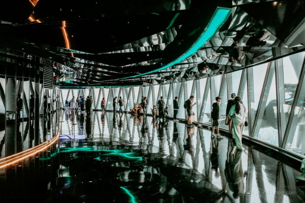 Gut zu wissen: Auf der höchsten Plattform wartet für ganz Mutige ein kleines Abenteuer: In gläsernen Gondeln, dem sogenannten „Bubble Tram”, kann man außen um die Turmspitze fahren. Das kostet natürlich extra, und aufgrund des Wetters haben wir es nicht gemacht. Mittlerweile gibt es sogar einen Skywalk für alle, die echten Nervenkitzel suchen.