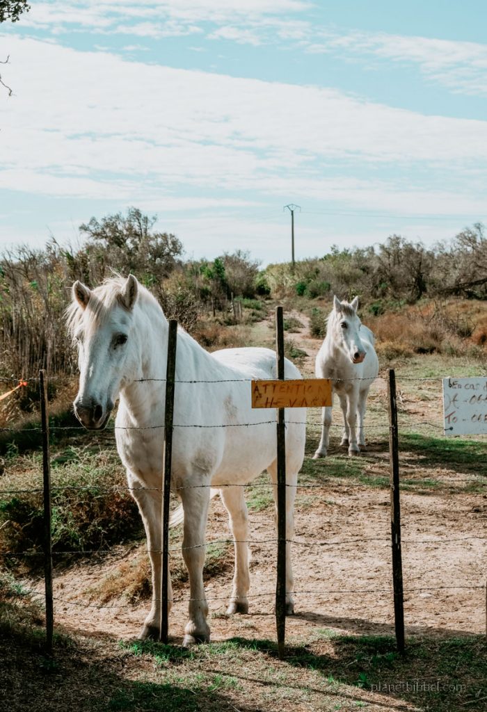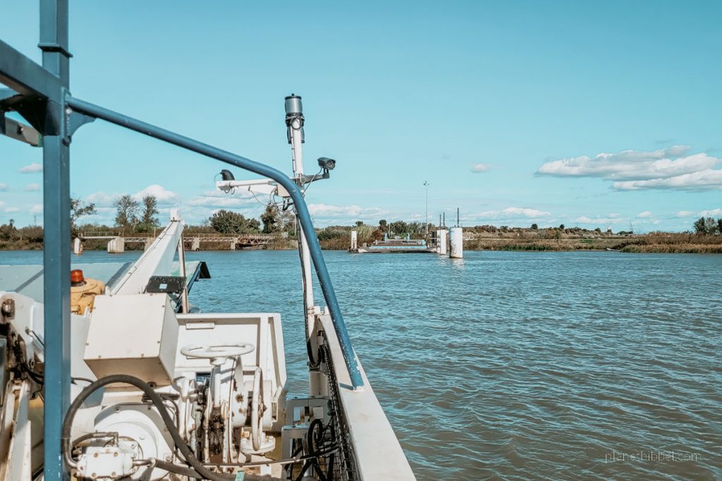 Die Camargue ist auch für ihre weißen Pferde, schwarzen Stiere und die unzähligen rosa Flamingos berühmt. Leider haben wir keinen einzigen dieser Vögel gesichtet, die hier aber das ganze Jahr über leben. Ganz sicher soll man die Flamingos jedoch im Parc Ornithologique, 4 km nördlich von Saintes-Maries-de-la-Mer, zu Gesicht bekommen. Ein stilles Erlebnis ist die Überfahrt mit der Fähre über die Rhône nach Port-Saint-Louis-du-Rhône. Ohne Brücke und Eile gleitet man von einem Ufer zum anderen und spürt, wie sich die Landschaft langsam Richtung Mittelmeer öffnet.