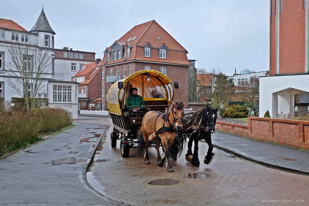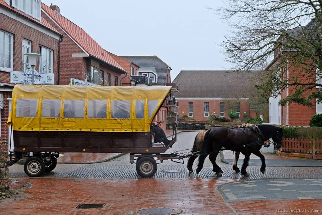 Ok, das mit den Rädern sollte man sich bei Sturm und Dauerregen schon gut überlegen, denn u.U. kann man die kaum nutzen. Aber in der Regel scheint ja doch auch immer wieder mal die Sonne. Uns wehte es allerdings fast von den Rädern und wir kamen vor lauter Gegenwind kaum vom Fleck. Fahrräder und Pferdekutschen sind jedoch das Hauptverkehrsmittel auf Juist und geben der Insel eine Beschaulichkeit, die man sonst selten findet. Wir waren ein bißchen betrübt, dass wir nicht mit den Rädern die Insel entdecken konnten. Aber das bedeutet dann wohl, das wir irgendwann wiederkommen müsen.