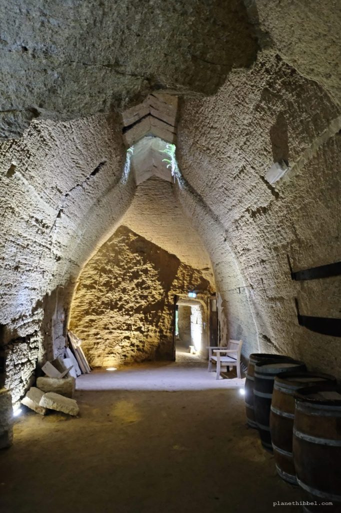 Der Parcours-Troglodyte befindet sich im charmanten Örtchen Souzay-Champigny und ist frei zugänglich. Es liegt ca. 7 km von Saumur entfernt und man kann durch eine Art Höhlensystem laufen, in dem es einige alte Wohnungen und Geschäfte zu sehen gibt. Hier verläuft auch die Radstrecke Loire Velo, daher begegnen einem immer wieder Fahrradfahrer mitten in den Höhlen.
