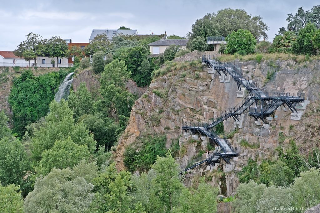 Über eine gewundene Stahltreppe geht es dann hinunter in den hübsch angelegten Park, in den sich ein ca. 25 Meter hoher künstlicher Wasserfall ergießt. Im feuchten Nebel des Wasserfalls wachsen Baumfarne, Bambuswälder und anderen exotische Pflanzen und wir wähnten uns glatt in Malaysia. Auf dem Rückweg kommt ihr an Wänden voller Streetart vorbei, bevor es die steilen Treppen hoch und zurück zum Museum Jules Verne geht.