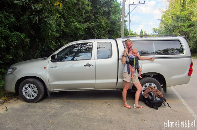 In Thailand gibt es (logischerweise) nicht die gleichen Sicherheitsvorschriften wie in Deutschland. Kinder sitzen im Auto generell auf dem Schoss und viele Thais, fahren gar mit 1 bis 2 Kindern auf dem Moped durch die Gegend. Das war uns persönlich einfach viel zu unsicher, es gibt allerdings sehr viele Touristen die dies nachmachen. Wir haben uns alternativ auf Koh Samui einen alten, klapprigen Jeep angemietet und in Krabi einen lächerlich großen Pick Up.