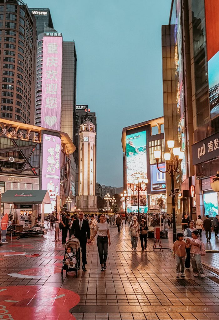 Mein Tipp: Kommt abends, wenn die gigantischen LED-Fassaden rund um Jiefangbei zu leuchten beginnen. Dann wirkt der Platz wie eine Mischung aus Times Square und asiatischem Neontraum.