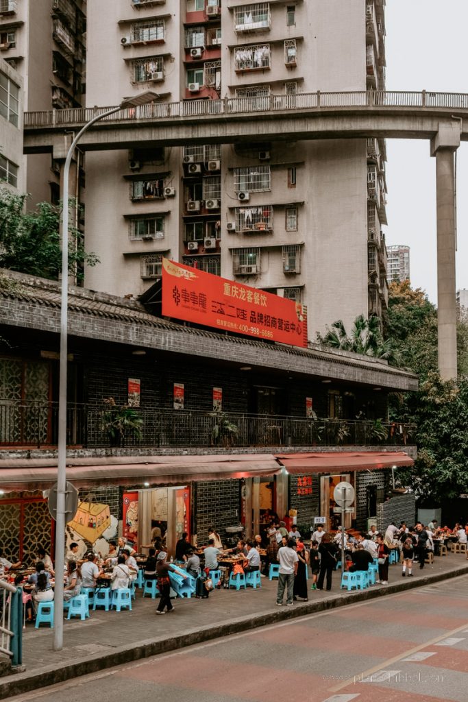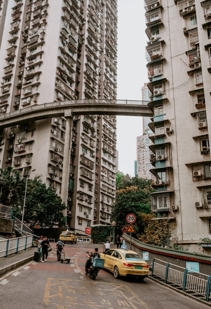 Das besonders Verwirrende an Chongqing ist, dass man eigentlich nie weiß, auf welcher Etage man sich befindet. Da die gesamte Stadt in einen Hang hineingebaut wurde, befindet sie sich quasi auf mehreren Ebenen. Daher wird Chongqing auch als 3D-Stadt bezeichnet. Es gibt mehrstöckige Highways und Einkaufsstraßen, die sich auf Plattformen im 20. Stockwerk befinden. Besonders eindrucksvoll wird dies am Kuixing-Platz, der zu den spektakulärsten Aussichtspunkten Chongqings gehört. Der Platz selbst ist eigentlich nichts Besonderes, er befindet sich jedoch nicht am Boden, sondern im 27. Stockwerk.