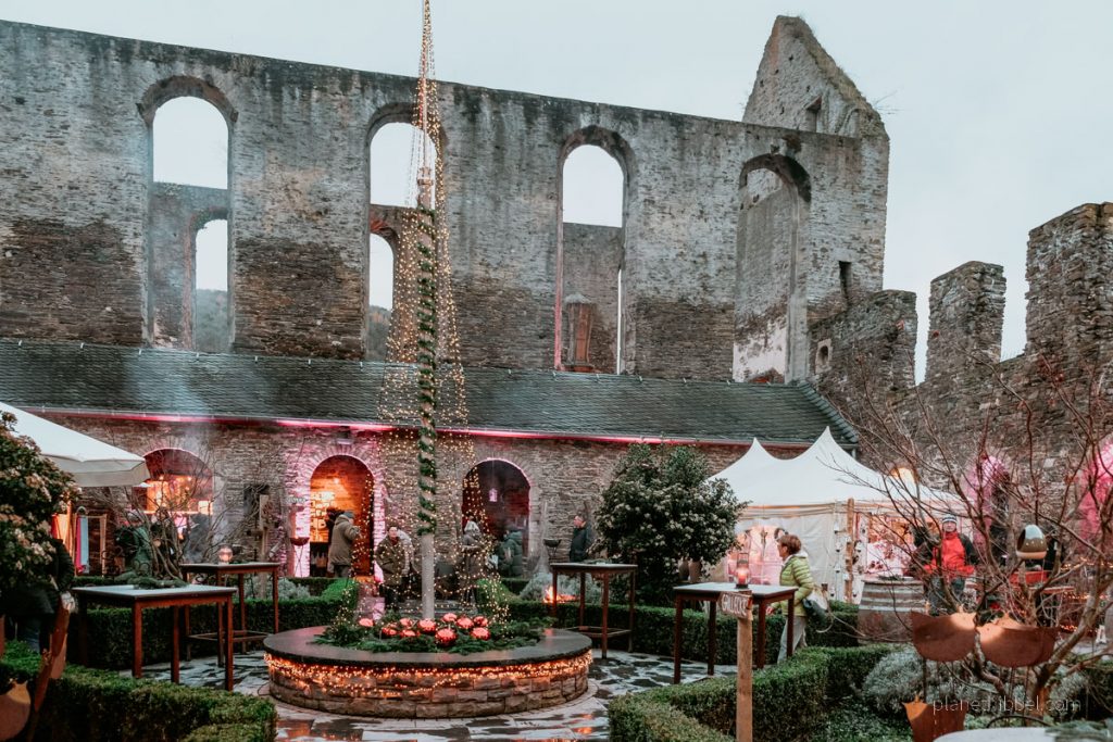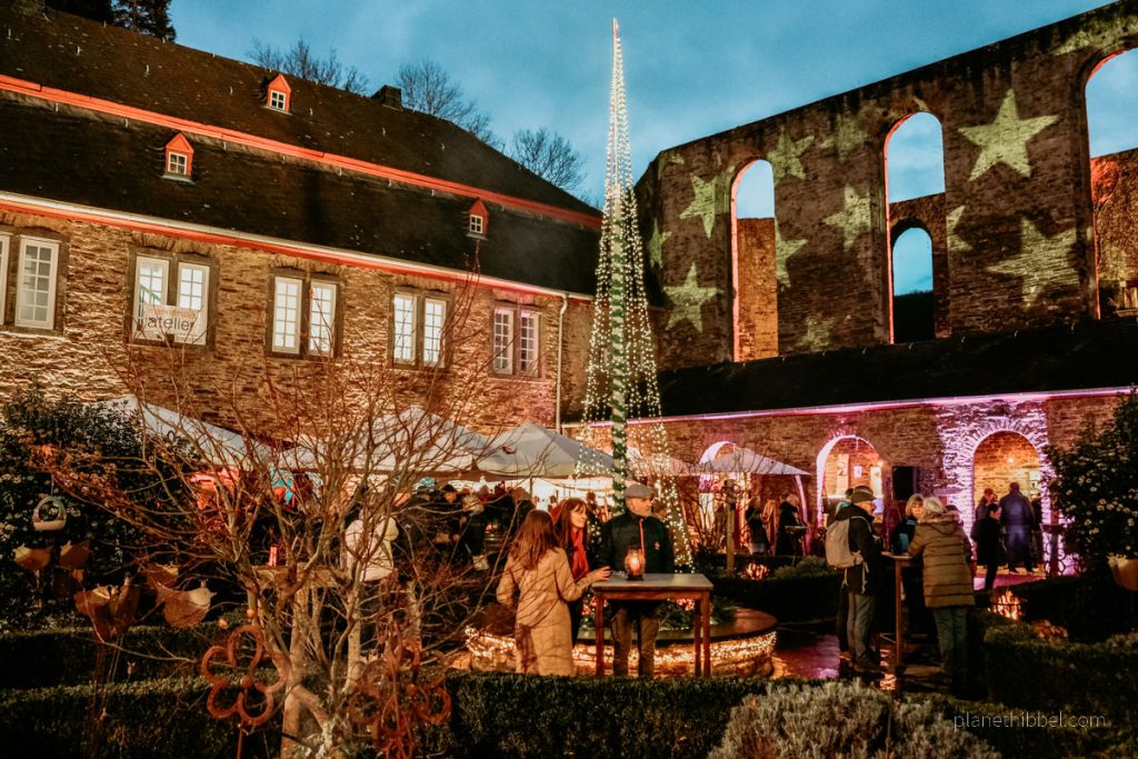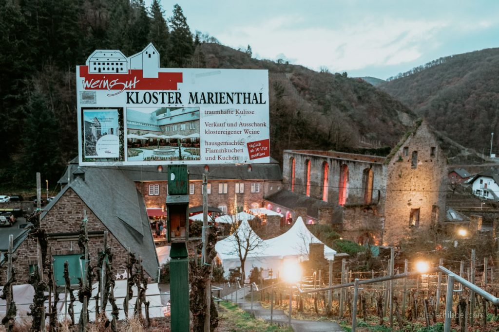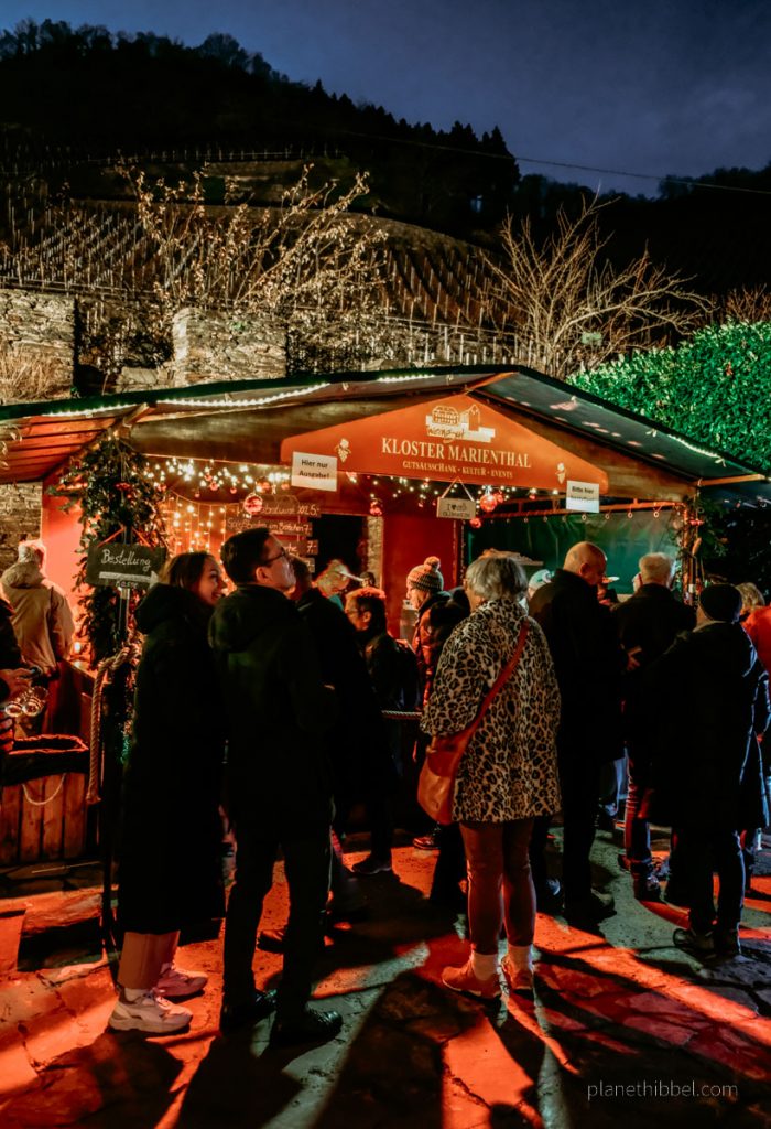Einer der stimmungsvollsten Weihnachtsmärkte der Region findet im Weingut Kloster Marienthal statt, das von den Weinbergen des Ahrtals umgeben ist. Da es etwas außerhalb liegt, erreicht man es am Besten mit dem Auto oder dem ÖPNV. Zwischen den alten, illuminierten Gemäuern gibt es Feuerkörbe, Glühweinbuden, Stände mit regionalen Spezialitäten und hübsche Handwerksstände.